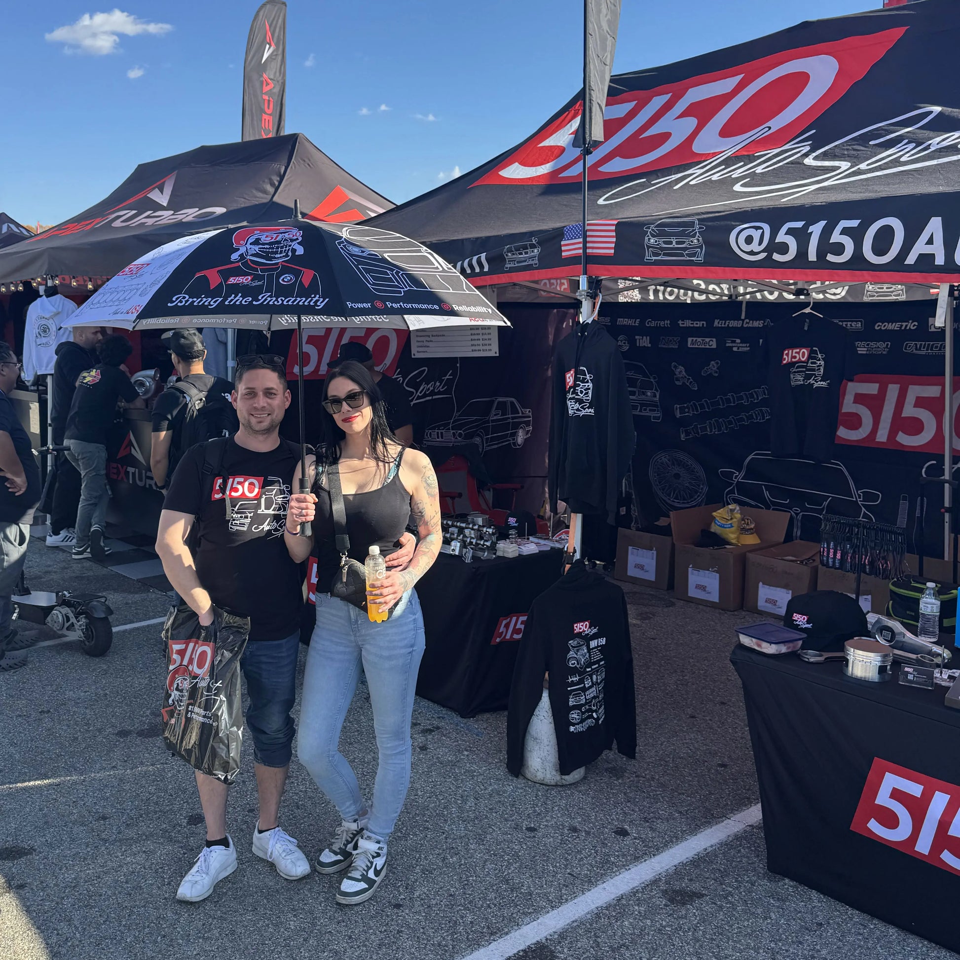 Don't let the weather ruin your day! Keep cool in the summer sun or stay dry in the rain with a 5150 Umbrella. Design features include high performance blue prints, your favorite BMWs, and the 5150 Troublemaker.